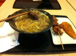 花丸乌冬面是一家连锁店,店面很多的,他家的生意很好,经常要排队的,点了牛肉面,经典的口味,面条不多,作为大胃王的我还点了油炸天妇罗和炸鸡排,他家的用油比较干净,就是价格比较高,感觉口味和麦当劳也差不多,性价比很差。查看更多