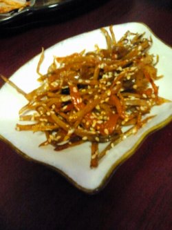上周末和一班好友共聚北京西路1068号食博汇2楼日本料理享受一顿丰富美味的日料,晚上7点大家陆陆续续到齐了,店家上菜,我们一起一边享受美味,一边聊聊工作中、生活中的琐事,倒也其乐融融。 日本料理店都是简简单单的典型的日式风格,有独立包房,也有客人随意就座的大堂,我们人多,于是选择了包房,喝喝酒,聊聊天,一边享受美食,还是很惬意的事情了。 先是冷食:煮物。 煮物中有蛋卷,胡萝卜,地瓜,还有金枪鱼。 接着上来的是冰鲜北极贝,北极贝十分新鲜,吃口清爽不腻。 照烧银鳕鱼,银鳕鱼肉质厚实,汁多味美,加入照烧酱汁,更觉鲜甜可口。 三文鱼,采取烤熟的方式,味淡,不够入味。 胡萝卜豆腐,清爽小菜。 烤竹笋,颇受欢迎的小食,爽口清淡。 香烤青花鱼,加入了柠檬汁的清香,青花鱼无腥味无涩味,肉质紧实,很是鲜美。 拌牛蒡,比较爽口的一道小菜。 我们还喝了不少啤酒、清酒,一边享受日式美食,一边畅聊人生,真真惬意无比哦! 查看更多