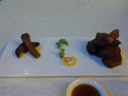 苏浙汇的素鲍鱼我挺喜欢的,这个的口感很爽脆,几乎达到鲜鲍鱼的程度了,味道倒是略微有点淡了。樟茶鸭很不错,外皮比较薄,不过香味很浓,鸭肉其实蛮干身的,吃起来连骨头都是那股子香味。糖醋小排必须要有的啊,酸甜的味道最浓于的就是它了,排骨的肉因为淋了酱汁以后凝固了,显得有点硬硬的,不过里面很柔软。查看更多