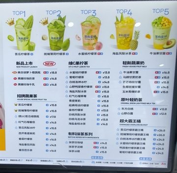 苦瓜柠檬茶 / 黄皮冰茶 / 白桃洛神冰柠 / 苦瓜凤梨冰柠 / 斑斓薄荷柠檬茶 / 葡萄柠檬茶