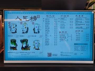烟雨乌龙 / 贪杯乌龙 / 芋圆茶乳 / 龙井香柠茶 / 凤凰单枞 / 荔夏冰冰茶