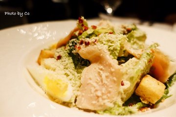 在正佳万豪酒店的小侧门进去坐电梯到负一层。虽然是第三次去,但每次都总能给人神秘而又高雅的感觉,餐厅里的装修很有欧式格调,昏暗浪漫的灯光,真的非常适合情侣约会啊!当然也适合小资小清新们聚餐!提前电话订座,餐厅贴心地帮我们安排好六人的桌子。中午有多款套餐选择,比之前增加了几款,又有新鲜感了,套餐价格比较适中,从88到188都有,丰俭由人。我们六位,油封鸭腿套餐和法式烧春鸡团餐各要了三份,配上前菜和甜品。这里的服务员真的好醒目,记得哪位客人点了哪些东西。前菜我们试了烟熏三文鱼沙拉,凯撒鸡肉沙拉,吞拿鱼沙拉,都好好味道,好香橄榄油,料又足,我其实不太喜欢吃沙拉,但是这里的沙拉真的令我爱上了。主菜来了,摆盘超靓,很用心,又创新了,简直就是一件艺术品,让你不舍得吃,当然味道也是很好,鸭腿和烧春鸡的肉都嫩嫩滑滑的!甜品,味道不错,造型也是好靓!总的来说,很不错,中午这个价格能吃到这么高品质的西餐很划算!