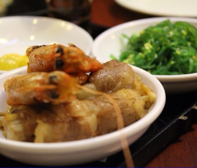 日本菜,就在建国门恒基中心1楼,环境还可以,干净利落,服务特别好,很细心。点了刺身拼盘,各样都有一些,我比较爱吃的是虾和三文鱼,生的虾是那种水嫩水嫩的口感,虽然没有熟虾的弹牙劲,但是蘸着酱油个芥末吃,也挺香的。鳗鱼寿司也不错,鳗鱼很厚,一口吃下去,真是挺过瘾的。老公又点了清酒,3人消费170元。