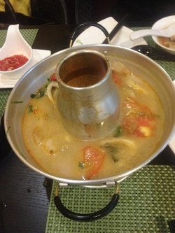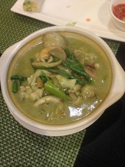 这家店自从看到过某人拍的照片后就一直想吃来着,但是某人就说不好吃,怎么也不带我去!光棍节的那天突然就想起这家店了,然后和朋友一起去了,团了个99元的双人餐,店里人挺多,店面不大,光线有点暗,进门有个主管还是老板样子的帅哥双手合十,说了一句【萨瓦迪卡】,引我们入席,之后有服务员验证,没多久就上菜了,服务员的衣服很有民族的感觉……先上了个蔬菜沙拉,不知道用的是什么沙拉酱,甜酸的口感,味道不错,里面有黄瓜条,紫甘蓝,胡萝卜条,小柿子,西生菜,最下面用一片生菜垫着的,量不多,味道不错,给4星然后上了两杯饮品,我的是红色的,里面看着像是花瓣,但是口感有点像是果肉的,味道也还好,3星接着上了炭烧猪颈肉,依旧是用生菜垫着的,很薄的一片,量少啊,有点肉有点糊糊的,有肥有瘦,但是口感很紧实,有点微甜,我和我的小伙伴都表示很赞,给5星过了一会儿又上了咖喱鸡排,味道有点怪怪的咖喱,微辣吧,鸡排还可以给个3星接下来好长时间没有上菜,估计是忘记了,朋友催了一下,服务员说是人多得等一下,过了一会儿先给我们上了米饭,说是香米,其实就是一般的大米饭,连五常米都算不上,上面撒了些黑芝麻又过一会儿终于上了那个辣椒膏炒鱿鱼,闻着有点臭臭的,有点重口味,味道能给个3星半那样子吧最后吃得很饱,多亏了那个米饭,不然真吃不饱啊!…查看更多
