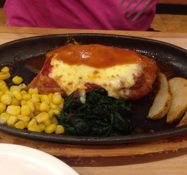茄红烤翅配汉堡挺灵的,里面的汉堡就是牛肉排了,咬起来松松的,算是比较嫩的口感了吧,最主要的是还有配两个鸡翅,鸡翅烤的很入味,里面还有好吃的酥香薯块,一份把几样好吃的东西都包括进去了~~相较而言他家的意面我不是很喜欢,吃的热那亚风味罗勒松子酱面,总感觉有点油了。…查看更多