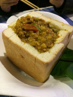 地址工体北路8号三里屯soho2号商场5楼517号(三里屯VILLAGE对面), 三里屯来到这里就有一种异域风情的感觉,主打的都是创意菜品,很有想象力。芝士肉酱蘑菇、咖喱面包鸡、柠檬鮰鱼片等等都是非常不错的,裁量都不是很大,但是很精致,最优印象的当然还是咖喱面包鸡,面包略微有点发甜,洋葱切的很碎,很香,吃起来口感相当不错呢,价格不错,很实惠的一家店。查看更多