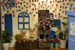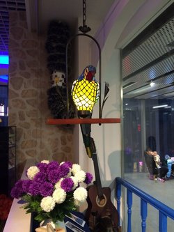 在三里屯soho商场2的5楼,蓝色的主体装修,主打中式和希腊的创意菜。点了芝士肉酱蘑菇、咖喱面包鸡、柠檬鮰鱼片、大麦米饭。每道菜量都不大,但是精致好吃。其中,芝士肉酱蘑菇是小铁盘的,蘑菇和青笋,配上浓浓的芝士;咖喱面包鸡的面包略微发甜,洋葱切的是碎钉状;柠檬鮰鱼片是酸辣口味,鱼肉很嫩滑;大麦米饭很有特色,属于健康食品。印象最深的是那个鹦鹉造型的灯,很不错。有免费停车券。查看更多