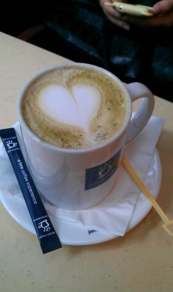 挺不错的咖啡店~地段很好~店内环境很安静~挺适合坐着休息休息闲聊一下的地方~点了一杯拿铁和一块布朗尼~拿铁味道蛮好的~咖啡香味和浓郁~口感也蛮细腻的呢~布朗尼,外面的巧克力味道蛮香蛮浓郁的~甜而不腻的口感~不错!不过这家店的话~就是里面竟然允许抽烟~还蛮污染环境的呢~希望可以改进呢~查看更多