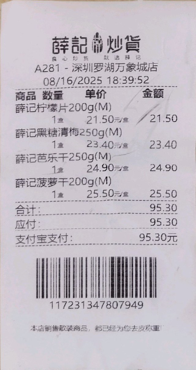薛记炒货 (深圳万象城) (深圳) 网址: https://s.openrice.com/KtLS0W0ogPU00 地址: 深圳罗湖区地王宝安南路1881号深圳万象城一期L4层L426-D06号铺 电话: +86 19066353001