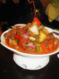 和同事们来过两次了,他家在万达金街的三楼,位置比较偏僻,但店堂很宽敞,环境也不错,还有大电视看看,呵呵。他家做的菜基本上都是和肉有关的,口味也比较重一些,量还是比较大的,第一次来时,我们是两对夫妻,是对方推荐的这家店,点了手抓羊肉、牛奶鸡蛋醪糟、大盘鸡什么的,印象很深刻的就是这个牛奶鸡蛋醪糟,味道很特别,又甜又带点酸,是上海人比较喜欢的口味,酒酿鸡蛋和牛奶和在一起还真是不错,第二次来还是点了这个,他家的肉食做的不错,味道都满入味的,买单时都是用团购券,50的卖38元,这样就比较实惠了。查看更多