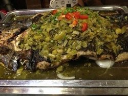 这家烤鱼店还是很不错的,味道很好吃,特别是他们的烤鱼王套擦才78元,用的鱼也是鲶鱼,做出来的鱼肉好吃刺少,在烤盘里整个菜的分量很大,上面都是青红椒,香菇,剁椒上面的,鱼是在下面,鱼肉细嫩,味道鲜美,汤汁丰富,香菜的清香味在里面,吃起来很舒服,喝着啤酒吃一点也不觉的够,几个人没几下就吃完了,感觉真的很不错的 查看更多