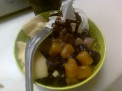 地理位置优越,一进入万达地下广场就可以看见了被名字吸引了,问了店员“天寒”是什么?回答到是类似于果冻的东东,好模糊的解释哦……端上来卖相还是很不错的,里面还有芋圆、冰激凌、嫩仙草,图中透明的就是天寒,味道确实类似于果冻提一下,芋圆还是很好吃的,有嚼劲不错,搭配冰激凌和仙草别有一番风味,还是很好吃的他家分量不少哦,吃过饭的MM慎选,偶是当晚饭吃的总的不错,下次还会去的查看更多