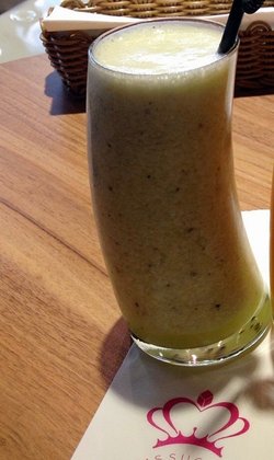 跟同学逛世贸天阶,我们在这里喝的下午茶,其实就是想聊聊天。很喜欢这里的环境,布置的挺小资的,也挺精致的。我点的猕猴桃汁,虽然45元一杯的价格有点小贵,但是里面果肉真的挺多的,喝着也是微酸,甜度还不大,而且泥猴桃本身含有很多的维生素,所以也非常有益健康。查看更多