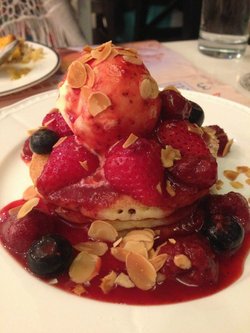 MS Sugar也是明星餐厅了,去过几次,价格并不便宜的,不过看在味道不错,分量也不小的份上,也就可以接受了。草莓松饼是性价比比较高的,下面足足垒了有三层的松饼呢,松饼烤的很不错,有些鸡蛋仔的味道,不过味道还要再甜一些,更加突出了黄油的味道。上面的雪球质量挺高的,很滑柔。火焰山土司就比较贵了,一百多了,其实那么多小土司也就是一个大土司分开的而已,上面的奶油很凝固,土司本身也是散发着蜜糖的香味。查看更多