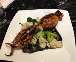 位置:光华路甲9号世贸天阶MALL南街L2层L228C。环境:谢娜开的店,环境自然不会差,布置的挺时尚的。菜品:总体来说很有创新,炸海鲜熔岩石,外形看着黑乎乎的,实际是油炸的,外皮是墨鱼汁混合面做的,所以是黑色的,里面是海鲜的混合物,趁热吃挺焦酥的。还有个蛋挞,原名忘记了,中间的芯偏甜,底托就跟曲奇的味道似的,很酥,造型很漂亮。价格:人均100元。查看更多