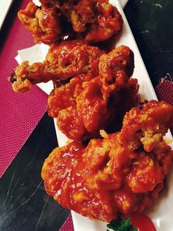 这家店就在世贸天阶MALL南街,环境还是挺不错的,就跟咖啡厅似的,简洁时尚,就是人太多了。点了这个巴弗罗巧克力辣鸡翅,其实我并不讨厌巧克力,但是炸鸡跟巧克力的组合还是挺新鲜的,炸的挺焦酥的,辣味一般,也就是微辣,不过放了巧克力酱的口感还是有点怪异呀,还是吃不太习惯,不过这个创意挺好的,邻桌也都在点,大家估计都是图个新鲜。价格小贵,2人消费210元。查看更多