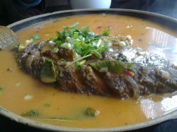 很早听说这个店,终于去吃了一次。这家店是高圆圆开的,慕名而来的,我们去的是朝阳大悦城店。这家店在朝阳大悦城里面的6层,坐地铁6号线到青年路出B口直接从底下穿过去就可以了。这家店在6层,环境挺不错的,挺温馨的感觉,店面不算很大,但是也还行。服务员很好的态度,很和蔼。我们两个人,就要了酸辣柠檬罗非鱼和菠萝饭。酸辣柠檬罗非鱼,58块钱,味道应该跟酸汤鱼一样,因为酸汤鱼很贵,而且锅底也要钱,所以根据服务员推荐的点了这个。就是一整条的罗非鱼,差不多一斤吧。汤很酸,但是很好喝,鱼肉很嫩,是炸过的,一份量挺多的。还要了菠萝饭,27块钱好像是,个儿不小,味道酸酸甜甜的很好吃,不过感觉米饭里面稍微有点儿硬,貌似没蒸好。不过总体很不错。查看更多