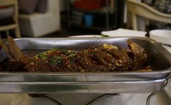 位于大悦楼六层。主营贵州菜系。推荐个硬菜--炝锅鱼。外形像是烤鱼,但仔细观察和尝上去的口感上应该是先炖,然后装撒上辣椒面、蒜沫后淋上热油。口感是酱香味为主。椒香爆牛蛙,椒香有,但不辣。还是酱味为主爆炒,牛蛙很嫩。关键要说配的这个黄瓜,衬着爆炒的酱味中有点黄瓜的清香,就不显酱味的厚重。傣味烤五花肉,带皮五花肉,烤的肥肉晶莹剔透,肥油都已烤出去了,瘦肉不柴,肉皮软糯。白嘴吃味道就很好,我觉得不蘸配的汁好吃。当然酱汁本身没有问题,只是蘸汁掩盖了肉本身的香味。人均80多元。查看更多