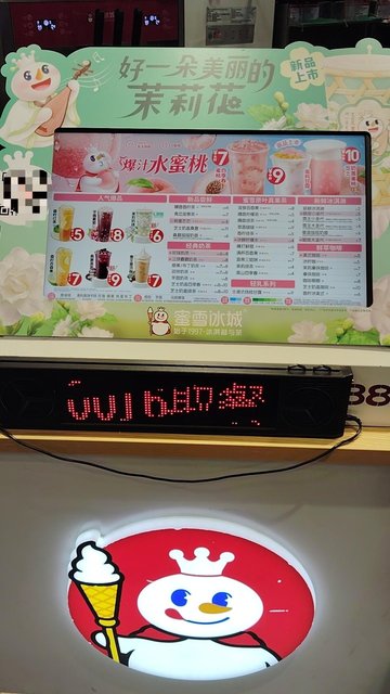 草莓摇摇奶昔 / 黑糖珍珠大圣代 / 奥利奥雪王大圣代 / 冰淇淋四季春 / 冰鲜柠檬水 / 满杯百香果