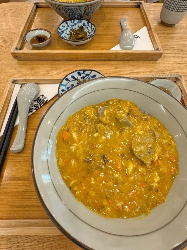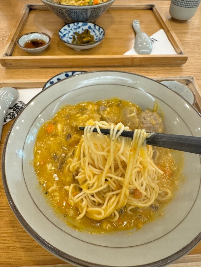 來到深圳旅遊,到了這家馳名的蟹粉撈麵店,令人期待。看了餐牌,有不同類型的蟹粉麵及小食,考慮一會後,決定享用一碗蟹粉牛筋丸拌麵(價錢是$69人民幣)。 等了一會兒,撈麵送來了。它有濃郁的蟹粉和蟹肉絲,十分之濕潤,拌麵最適合不過。牛筋丸已切開一半,有嚼勁亦彈牙,牛肉味濃。食物份量充足,餐廳提供的熱薑茶相當有特色,薑味刺激,既暖胃,亦提神。 環境方面,這裡寛闊,光猛新淨,舒適美觀。服務方面,店員們熱情有禮。…查看更多