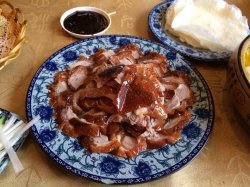 褚记北京烤鸭店的环境还可以,服务一般,价格中等,经常有买一送一的活动。这里的一鸭二吃。鸭肉剔下来,可以卷在饼里吃,味道还不错,比较的香嫩,就是味道有点偏淡。鸭架子可以油炸,香酥可口,连骨头都酥酥的。查看更多