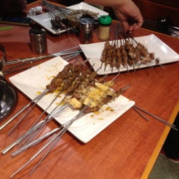 夏天相对来说会特别喜欢吃烧烤,这家的种类也是比较多,而且晚上的生意也真的很好。比较喜欢的是烤牛肉串,还有烤玉米,味道都是比较不错的。烤牛肉串,其实羊肉串的口感会更加软一点,牛肉是比较紧实的,不过加了辣之后很赞。烤玉米,玉米经过烤制之后,甜度很好的出来的,吃起来不是很软,是略带脆度的。人均消费在五十元左右,价格还是蛮适中的。…查看更多