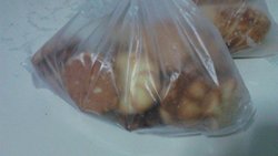 经过他们家,老字号了嘛,顺便买些小点心回去吃吃。 椒盐酥,形状跟袜底酥差不多,不甜不咸的椒盐味,老爸比较喜欢,我一般啦。 小曲奇,这个蛮好吃的,奶香味蛮浓的,而且很香酥。 鸡仔饼,挺大一个的,老妈觉得有一点点硬,我觉得ok啊! 他们家生意还不错,店员服务态度还比较热情。