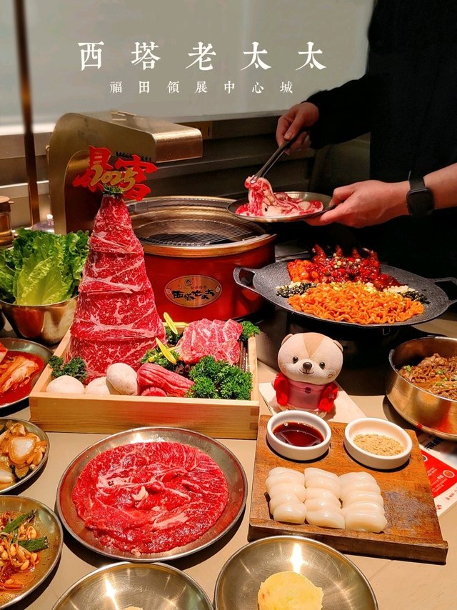 在領展中心城!有家烤肉店工作日也滿座,看來挺受歡迎欵。曾吃這家也覺得出品可以的,這次再來吃一波😎。從福田口岸過來2個地鐵站就到,地理位置方便。旁邊商場還有港人喜歡的超市。店舖在M層食肆區位置,簡約裝修環境舒適,桌子不會太細可以放到多個食物。入座時附送韓式小吃和特色麻醬,配肉肉一起吃別有一番風味🙈。-甄選肉塔組合拼盤食物包括:雪花牛大力、雪花牛肋條、牛舌、橫膈膜及口蘑。每天新鮮送來吃,色澤紅潤的賣相,不用放太多調味也吃得到鮮味。雪花牛大力有嚼感,牛肋條較香油脂味。牛舌鮮嫰爽口,橫膈膜肉質嫰滑。配特色麻醬吃味道更香的感覺,這個醬是入座時上菜附送的。-冷吃年糕等待吃肉肉的時候,吃個軟糯年糕唄。用了小木盤裝著,放著雪白的年糕。冰涼軟糯的質感,配著醬汁多了份香甜味,配黃豆粉口應較豐富。-肉肉另外點了老太太特色肥牛和瘦牛,兩款肉質各有特色,一樣的是肉質新鮮欵。肥牛肥瘦均勻,奶味香濃充滿肉汁,外層微脆吃起來挺香口。瘦牛肉味較香濃,質地焦白細嫰,配生菜吃味道可以欵。-老太太特色肥牛拌飯賣相吸引味道挺香的,肉質鮮嫰醬味香濃。這個要點來吃的,把拌飯配土豆泥,吃起來質感軟滑,多了份豆香味。想要多幾個問店員就可以,是可以免費續加的。-火焰辣爪芝芝火雞麵席前加熱味道真香,配著火雞麵充滿韓風,趁熱吃的質感較好。雞爪肉質軟滑,做得挺入味的。年糕質感軟糯,火雞麵辣得過癮。這個會有愈吃愈辣的感覺。-…查看更多