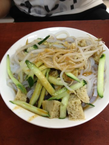 西安5号米皮的米皮我觉得至少是做的蛮正宗的了,米皮的厚度比一般的凉粉要厚的多的,像是两层搭起来的一样了,口感特别的鲜爽,吃着还是冰冰凉凉的了。米皮的味道是味道则是辣油的味道了,里面的辣椒籽是蛮多的。菠菜炸酱面是最有特色的了,面身本身就是浓浓的菜汁鲜味了,酱料里面有些肉粒和鸡蛋的。