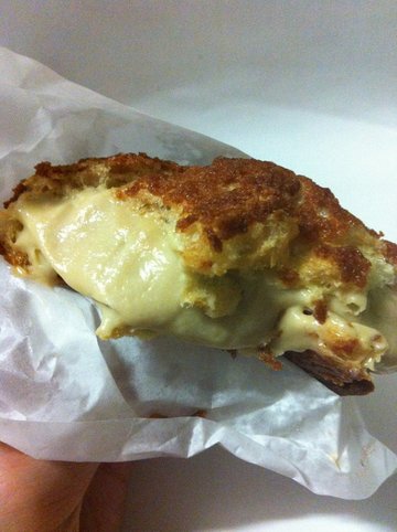这家的泡芙个头蛮大的,外壳比较松脆,咬下去有点偏硬面包的口感,不过没有那么硬啦,感觉还不错。里面的奶油非常细腻,入口即化,口感很美妙,是他家的亮点。口味很多种,原味、抹茶还有榴莲都是不错的。