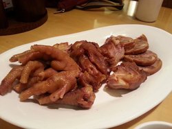 西贝莜面村是西北菜餐厅,这里的牛肉和面食是店里的特色,做的很好吃。酱味拼盘没有想象的大,里面是鸡爪,猪蹄和肘花。鸡爪上面没什么肉,除了皮就是筋,吃着很劲道,酱香浓郁,蘸着蒜汁吃很爽口。猪蹄吃着也是QQ的,不是很油腻,味道很不错。查看更多