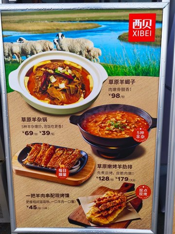 烤羊肉串 / 西贝面筋 / 草原酸奶 / 烤羊排 / 牛大骨 / 莜面鱼鱼