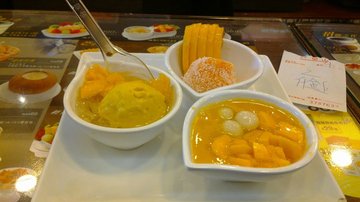 许留山吃过两次。第一次是成都刚开业那时,为了凑热闹,为了瞻仰一下甜品界的大佬。所以我抱着无比景仰,无比崇敬和期待的心态,去了刚刚开业的财富中心店。生意真的不是说好就能形容的啊,必须是火爆。期望越高失望越大就是这样的。然后我就没去过成都的许留山了。第二次是去年去香港的时候,为了见识一下真正的许留山,去了一次。价格比内地贵多了,味道好像是要好一些。这次在凯丹楼下,吃了那个说是台湾来的思慕昔,还是觉得不过瘾,经过许留山就又来了一碗。【多芒亮晶晶】34元翻看了一圈菜单,我觉得都兴趣不大,似乎只有这个的名字有点意思,就试试呗。店员问我是边走边吃吗?我说是。然后我以为是那种用杯子装着,然后就可以用吸管,一路走一路吸着喝那种。结果我接过来一看,还是用塑料小碗儿装着的,然后用小勺子吃。这样边走边吃该多累啊。所以我还是去规矩坐着吃吧。芒果果肉打成泥,然后放一些芒果果肉颗粒,一颗芒果味的冰淇淋球。所谓的亮晶晶就是透明的口感和椰果有点像,但是比椰果更细腻的东西,口感还是很好的,我喜欢。总的来说还是不错。因为我喜欢里面的水晶条,口感很好,放在里面超级增色的。恩。。。。。继续努力吃甜品吧。…查看更多