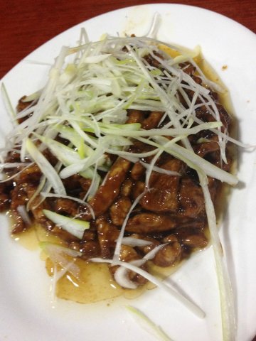 和伙伴约着去绘咖啡,想着喝咖啡前先把饭吃了。就在水碾河附近转了圈,看这家生意还挺好,感觉又有点像是老店,想必味道不会差,就直接锁定目标。结果进店后第一感觉就不太好,服务态度有点那个啥~当时还自我安慰,估计是味好生意好才会那么拽的。结果端上来的第一个菜就把我们惊呆了,先不说味道光是那袖珍的份量就让人大失所望了。说是素拼,里面只有三砣青椒。:(酱肉丝份量不多,最后一个兔子虽然黄瓜居多,但是勉强看着还行。吃下来的价格感觉性价比很低哈,以后不会考虑再去的。