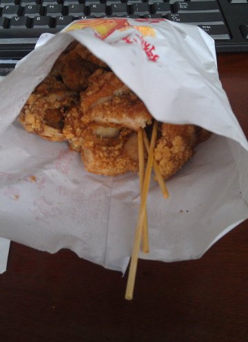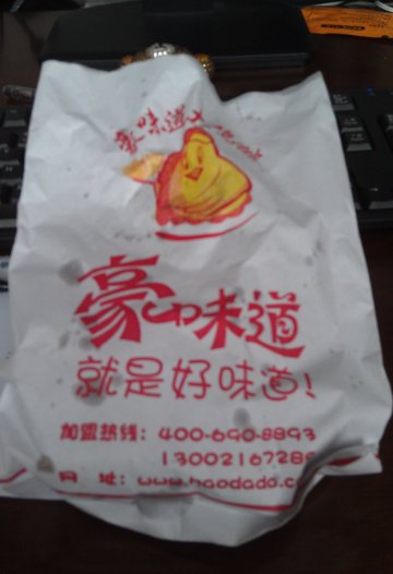 下午茶时间怎能没有豪味道鸡排来。哇咔咔。同事正好外出顺便帮我们从岚皋路带回来的外卖。。现在鸡排很多品。这家的跟其他家的也没什么特别不一样。反正就是油炸鸡排啦。不过同事那么热天带回来还是非常感动的。鸡排炸的恰到好处。表扬表扬。而且表皮不软