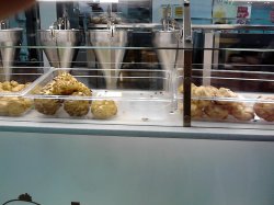 贝儿多爸爸泡芙工房 Beard Papa's现在的分店越来越少了,这家在南京路,第一食品商店里面,店面很大,半开放式的,生意还不错,泡芙的品种不是很多,但是价格实惠,量很足的,泡芙很新鲜,非常有层次,里面可以搭配香草馅料或者是巧克力的,貌似每个都称分量的,香草的比较清淡,巧克力的口味浓郁,各有千秋,我都喜欢。