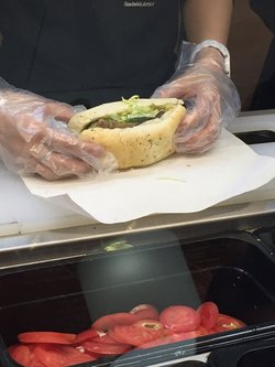 中国人寿大厦内的一家快餐店,路过顺便吃的午饭,因为减肥,就买了一份新鲜蔬菜三明治,很多新鲜的蔬菜,但是中间还有酸黄瓜提味,酱喜欢蛋黄酱和番茄酱,面包选的全麦,比较营养,多吃粗粮有益健康嘛,价格也不算便宜,6寸的是15元一份。查看更多