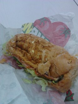 悲催的国庆 多悠悠等级42011-10-10 关注 悲催的国庆,人家happy hour偶还得加班!team三人就剩下偶一个,小克很义气,过来陪偶加班!亲一记MUA~ 兄弟!楼下的COSTA还有全家竟然都休息一刚,无语了,国庆长假他们也放假,想不通呀想不通!只得走到外面,就看到subway,不想再绕道B2吃东西了!subway生意不错,店面太小了,就俩服务员,一个收钱一个负责制作,有点忙不过来。要了今日特价的照烧鸡三明治,香葱酱,全麦面包,除了洋葱跟辣椒不要的其他所有蔬菜。微微烤了一下,很香,也很好吃!可能是饿了吧!没有买咖啡之前就啃起来了!天晓得,要知道已经7点半了!o(╯□╰)o…查看更多以上食记乃用户个人意见 , 并不代表OpenRice之观点。赞好分享悲催的国庆 赛百味 https://s.openrice.com/KtLT100yOy0G0检举 张贴 评分4味道3环境3服务3卫生3抵食用餐日期2011-10-04人均消费¥15 (晚餐)