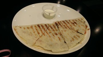 看到电视里面介绍这家店,感觉蛮好玩的,也没吃过墨西哥菜,就决定去试试,点了牛肉芝士烤肉饼,原价卖的,没有活动,芝士很多,拉丝很厉害,味道感觉还可以适应,没有像有些食客说的那么难吃,酸奶酱我也比较喜欢,没有甜味,饼皮很薄很脆,占了酸奶酱可以减轻馅料的重口味,就是量比较小,性价比不高,还点了热巧克力,比较坑爹,就是美禄,还很淡。…查看更多