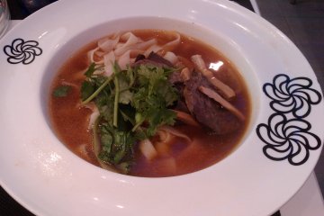 这环境有点像康师傅,吃个面30+。饭点人也不多,比较冷清的一家店。整个餐厅感觉不到有服务,只是点单、送餐、买单,可能人少服务也就懒懒散散了。牛腩面,整块牛腩很嫩,宽面软掉了,入口烂烂的没有筋道,汤头比较清淡。朋友的半筋半肉细面,细面倒是没有糊,有点筋道。