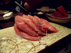 作战失败的赤坂亭 marvely等级42014-03-0761 浏览 关注 新上任的小领导一直说要请我们办公室的人吃饭,从去年年中一直拖到今年过完年,我们一直耐心的等待着,并且一早就坚定的选择了赤坂亭。这家赤坂亭,地方不是很大,只在餐厅中央有一个包厢,剩下的都是四人桌,人多了,就需要拼台子了。入座之后,店员就送上一份生菜和酱料碟,蘸料盘,从左至右分别是酱油、白醋和烤肉酱汁,酱油看着挺薄的,但是很鲜;白醋则略微清淡;而味道最好的是调制过的烤肉酱汁,很鲜美。其实来吃饭之前,我们就拟定了所谓的作战计划——为了多吃一些他家的烤肉,一开始不要先点烤肉,而是先吃一点小菜之类的,刺身是必须要点的,等稍微垫了点之后,才开始吃烤肉,于是我们前面各式菜样,都点了一些。特选黑毛牛刺身,牛肉很嫩,在口中咀嚼的时候,没有一丝的杂质,但是我们来的太早了,牛肉刚刚从冷柜里拿出切片,冰意实足。生拌牛肉,将鸡蛋和切成细条的生牛肉搅拌之后,入口的牛肉因为早就加入的酱汁很是香嫩,而且蛋液和芝麻使它们更加柔滑和香,但同样也是因为酱汁过多,觉得味道有点偏咸了。刺身甜虾、三文鱼、鲷鱼和冰山蚌的刺身拼盘。冰山蚌是第一次吃到,样子就是缩小版的象拔蚌,吃起来自然也是Q弹有嚼劲的。三文鱼腩刺身忽略旁边的素鲍鱼刺身吧,他家的TORO是限量的,每人只能点两块。这三文鱼腹部的肉,比前面那盘子里的三文鱼,颜色要白一些,看起来也肥厚了很多。入口虽然油却不腻,口感饱满。不过不是所有人都喜欢TORO,所以我平白的多吃了几块。烤牛肠第一次吃烤牛肠,很是好奇,牛肠没有想象中的韧度,而是入口即化,加之佐料的搭配,入口有种厚实的甜美感。可是牛肠上的脂肪太厚,如果没有清理好,就会觉得很是油腻。厨房第一次给我们的烤牛肠,上面的脂肪还算少,第二次再叫,就全部是脂肪了,完全不能入口。西京比目鱼外观上有些像银鳕鱼,但是口感上没有鳕鱼那样的嫩,而是稍稍的有些韧性,鱼肉纹理清晰,紧实,味道上则同样是香甜的。炸虾番茄这道炸物的重点应该是炸虾,但是我们却都大爱那一个个小小圆圆的番茄,番茄肯定是事先浸泡过芝士,然后再油炸的,所以当我们咬开脆脆的外皮,一股浓浓的芝士香气就窜了出来,油炸使得番茄里面的水分渗出,混合了芝士香气的汁水,也随着那股香气喷进了我们的口腔。于是在这股香味中,我们慢慢咀嚼着因为热度已经柔软的、酸度变低的番茄肉,觉得美味无比。于是我们向厨房提出了一个有些奇怪的要求,再点一份没有炸虾的炸虾番茄,据说把厨师吓了一跳。芒果三文鱼塔三文鱼是油炸过的,芒果肉铺在三文鱼下,最下面垫着的是薯原的厚片,上面的酱料则是酸辣酱,吃起来酸甜可口,就想是在吃一个可口的小食一样。但吃完这些“小菜”之后,我们明显觉得饱了,然后惊讶的发现,我们竟然还没有点烤肉,可是已经不敢放开手脚都点一遍了,于是只好挑了价格比较贵的几种点了。厚切花腱肉这种牛肉,有着大理石般的深沉的纹理,看着就很诱人。上等牛舌烤过之后的牛舌,并没有因此失去汁水,而且很有嚼劲。黑毛厚切牛舌厚切的,汁水自然很丰厚,而且吃起来除了有嚼劲外,也觉得很柔嫩。最后我们只点了5盘头,而最后一盘肉,我们几乎没怎么动,就再也吃不动了,赤坂亭的吃烤肉作战计划,失败。…查看更多+ 8以上食记乃用户个人意见 , 并不代表OpenRice之观点。赞好分享作战失败的赤坂亭 赤坂亭 https://s.openrice.com/KtLT100Gle900检举 张贴 评分4味道3环境3服务3卫生3抵食