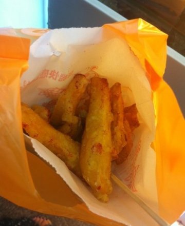 有时候去超级鸡车不吃鸡排的时候我就喜欢吃甘梅地瓜薯条~~地瓜薯条都是条状的,外层炸的很脆也很香,而且还洒了好多甘梅粉,甘梅粉的味道是酸甜型的,很好地增添了地瓜薯条的风味,吃起来口味酸甜,外面脆香里面酥软,不错的味道还有口感。