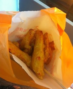 前段时间鸡瘟啊~不敢再碰炸鸡之类的东西额~但是又喜欢吃炸的,个么只好退而求其次,选了盐酥菇,这个还蛮好吃的,咸咸的,杏鲍菇的肉质蛮嫩的,有点像在吃肉的赶脚,还蛮喜欢的说~甘梅地瓜条,喜欢甘梅粉的酸酸甜甜的味道~地瓜有点偏干~查看更多