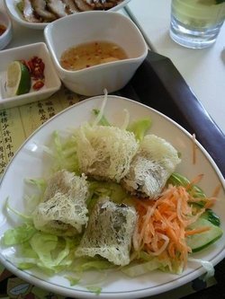 越鲜99C大概是我吃过的唯一一家走快餐路线的越南菜,招牌的有牛肉河粉,很清淡,有各种香料味,不是很对我胃口,我还是喜欢重口味一点的。虾卷很好吃,外面那层米皮薄地像纸一样,虾肉很新鲜,还有各种蔬菜,蘸的酱是甜辣口的,很好吃。…查看更多