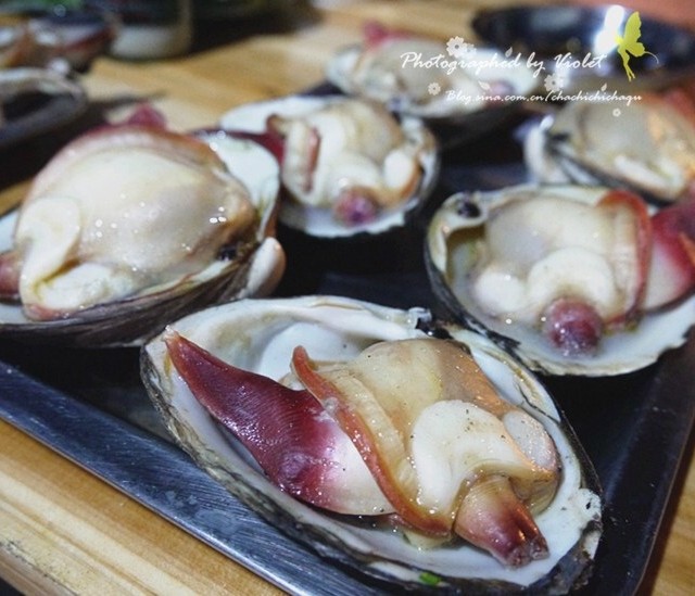 这些店就是烧烤类的店,但这家是以海鲜为主,价钱偏贵,幸好海鲜都是比较新鲜的,所以也来过两次了,觉得还是不错。烤元贝,看起来不是很大的肉,烤过之后,味道是不错,总体的口感是可以的,放的蒜蓉不够多,所以不够香,但也保持了鲜味。生蚝,也是比较瘦,这个一般哦。虾,因为自己选的是比较大的虾,味道很好啊,爽口。