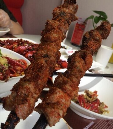 环境很有特色的一家店,开车的话还是很方便去的。门口有可爱的龙虾吉祥物,服务员热情地接待了我们,还介绍了各种小龙虾的口味。几种小龙虾的做法都很好吃,吃完后的面条更棒!红柳木烤羊肉好大串好过瘾!烤脑花真的很好吃,后来又加了一份可惜嘴里全是小龙虾已经分不出味道了。麻辣鸭舌稍微有点不入味但是很滑嫩,还是算好吃。北冰洋汽水要15一瓶…可能因为运费贵吧。最后结账320多,买了300的代金券再付了一点,饮料是不能用代金券的。2个人的话算来有点小贵,不过能够吃到干净的龙虾也算也有所值了,服务不错!
