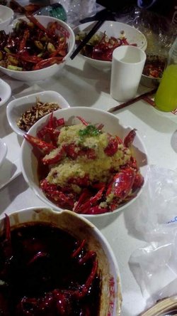 金开大道1000号爱琴庄园4号商铺,位置比较偏,但是为了美食还是专门过去.店铺不大上下两层,装修简单,服务员态度好,拿手套,换渣盘都很及时.他家做的小龙虾在重庆算做得不错的,卫生很重要,小龙虾很干净,个头也大,做法多种很全面,蒸的,炒的,煮的都有,辣的,不辣的适合各种消费者的口味.我就特别喜欢吃金牌蒜泥龙虾,味道鲜美,蒜捣得很蓉,特别香!价格小贵,太好吃了,一盘接一盘.…查看更多