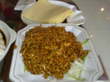 非常实惠的一家东北菜馆 都是东北的一些传统的家常菜 装修也都是有种东北气息 室友正好就是那边的 老听他们说那几个菜 所以对东北菜的兴趣大大提升了很多 菜价都不贵而且都是大盘大盘上的 京酱肉丝的调味很足 拔丝地瓜外表脆脆的黏黏的 他家饺子特别好吃!都说有东北的味道!而且服务真的很热情!难道因为是东北人嘛