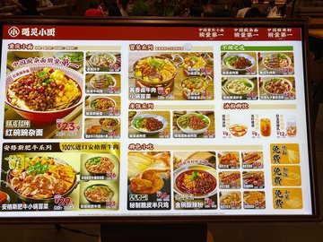 红碗豌杂面 / 金碗酸辣粉 / 大勺肉酱酸辣粉 / 锅巴土豆 / 茉莉冰粉 / 酸菜牛肉面