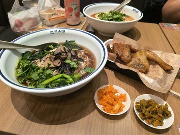 这夜已经差不多九点多,随便吃点简食赶回家. 在笋岗万象食家这商场内B1层见到”遇见小面“. 三人各自点自己的晚餐, 近门口位置看到广告牌新上线的脆皮半只鸡($15.9)很吸引👀😋我选了香菇汤面配半只鸡套餐加了$2.5青菜及一杯柠茶(全部合共$42.9).香菇汤底清香,配上香脆的炸鸡刚刚好.朋友1选了蕃茄汤面配半只鸡套餐~试了一口蕃茄汤,味道普普通通,不会太酸.朋友2选了酸菜卤肉面,酸菜咸度适中,卤肉很多汁浸入面食也很美味.